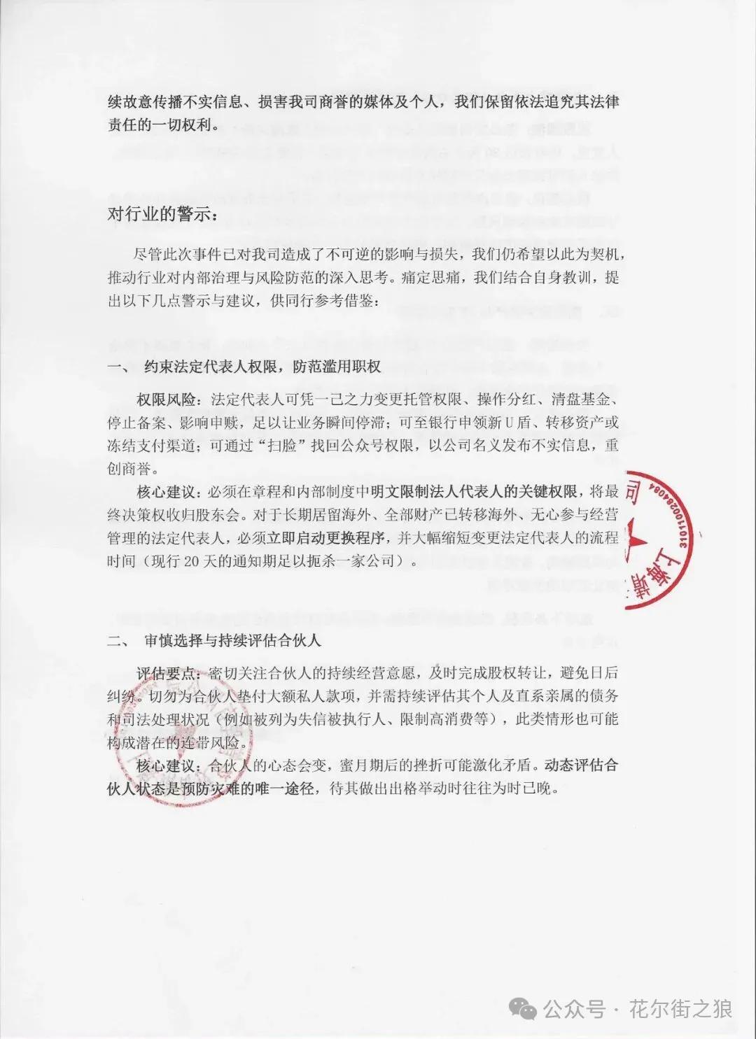 尽管此次事件已对我司造成了不可逆的影响与损失,我们仍希望以此为契机,推动行业对内部治理与风险防范的深入思考。痛定思痛,我们结合自身教训,提出以下几点警示与建议,供同行参考借鉴: