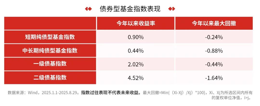 固收+产品以债券等固收资产作为底仓(通常占比在80%以上),用来力争获取相对稳定的基础收益,“+”的部分则搭配不超过20%的股票、转债等资产,旨在捕捉市场机会提升收益弹性。从今年债券型基金的表现来看,“固收+”基金充分展现了其股债“跷跷板”效应下的平衡优势。它既能在债市收益下行时,凭借权益资产争取收益,又能在股市波动中,依靠固收底仓缓冲风险。对于想在“稳”的基础上追求更高收益弹性的投资者,“固收+”基金或是一个不错的投资选择。