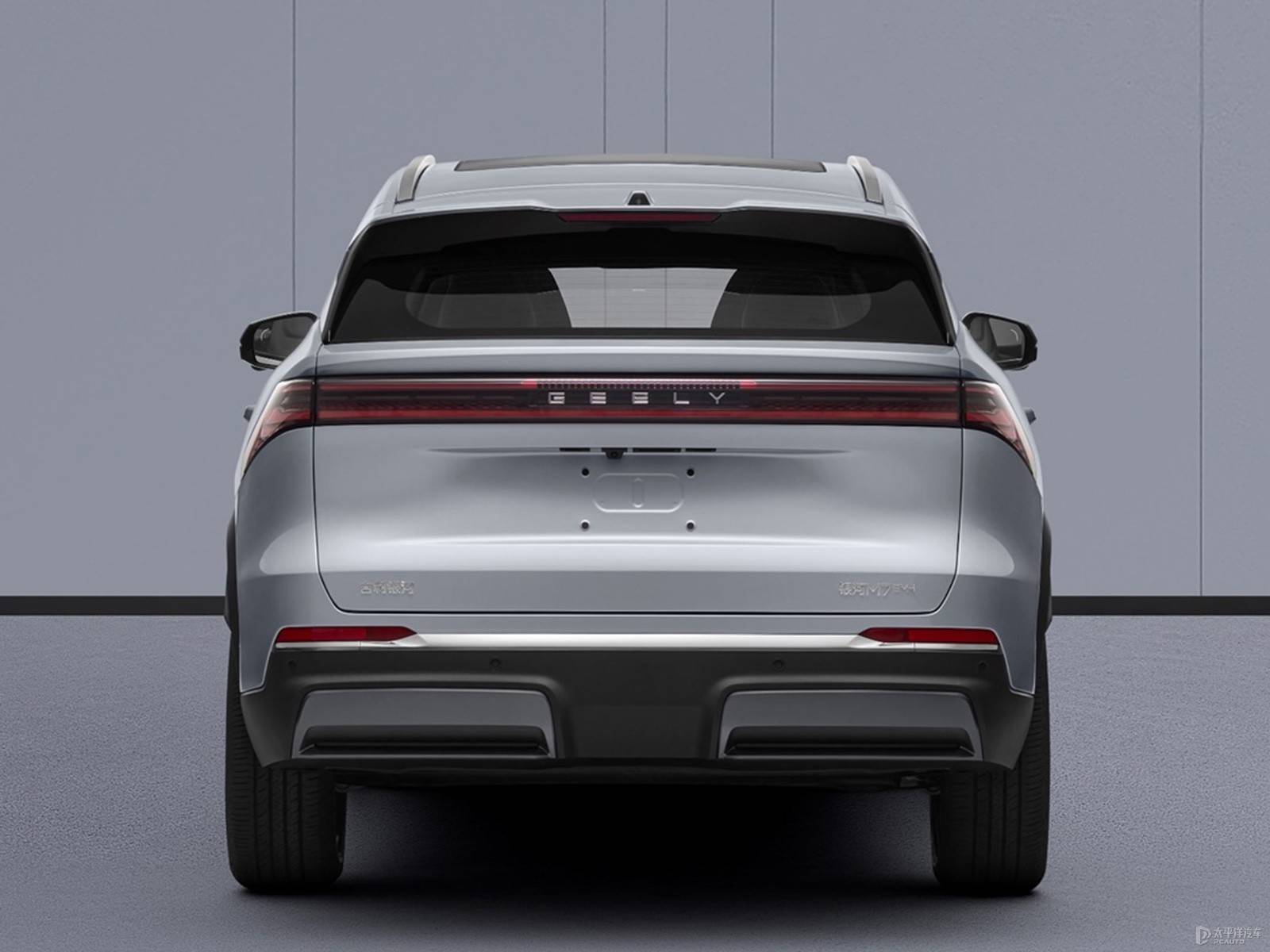 车尾部分,新车同样采用时下流行的贯穿式尾灯,与前头灯相呼应,吉利的品牌LOGO位于灯组中央,与灯组融为一体。